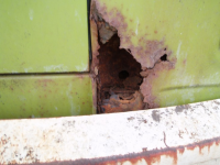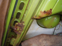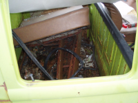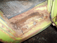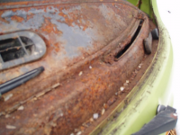 Rust er ingen hindring, Glenn! Takraset treng berre nye inner og ytterkanalar, samt eindel av sidepanelet/bakskjermen på venstre sida, + bakkant av bakskjermen og litt batterikassa, eit område ved støtfangarfestet bak, eitpar hol i golva, eit ihelrusta dasjbord, og vekkrusta setebeltefester samt manglande jekkfester eindel plassar og heilt sikkert meir til og endå meir.. fort gjort, men taket kan ta litt tid å få rett.
