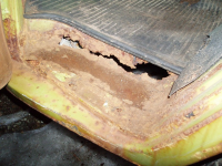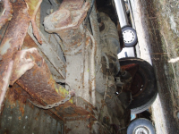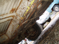 Var eindel rust i kantane nedi her.. men ikkje rart sidan reservehjulsbrønnen var fyllt til randen glas, natur og divers uhygglig (ja feks ei gammal nista.. ein plastpose med ein yugurt og ei skjei.. fyllt til randen med mygl  Gliser Bilen vart forlatt som den var!