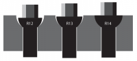 Kule er kule, men de kan ha ulik størrelse  Da jeg skulle montere mine Fuchs på 03'n ville jeg ha bolter og ikke pinner og muttere. I bakhodet lå det utrykket "R14", som jeg nok har hørt av Morten Aase, Magne eller TomR. Men det viste seg fort at det var bare disse tre som hadde hørt om dette. Først gikk jeg til Biltema som hadde bolter med kule, men ingen der viste størrelsen på kula, så jeg kjøpte en pakke og sprutet på litt grunning bak på bolten og prøvde den i felgen... lakken forsvant bare på den innerste millimeteren! Helt klart en R12. Deretter ringte jeg til diverse leverandører av bolter og dekk, og ingen hadde annet en "kule" i sine lister. En av dekkforhandlerne fortalte meg at han hadde sett at Transporter T5 hadde "stor" kule og noen Mercedes hadde det samme. Så jeg ringte Mercedes og de sa de fikk "stor kule" i 2003 på de store modellene, men hvor stor viste de ikke. Ringte Autotuning, og de viste ikke mer enn at mutterne deres passer. Så ringte jeg Machine 7 i uk som driver stort i adapter bransjen, han gikk så langt som å påstå at forskjellen på kulene kom av unøyaktig produksjon??? Tydeligvis ikke ett lett tema. Etter surfing på nettet kom jeg frem til at Audi har R13, og det stemmer med hva jeg har sett i egne forsøk med A4 bolter. Og T3 skal jo passe hører man, så jeg sjekket litt opp i Møller systemet, og der kom vi fram til at Q7 T3 T4 T5 og Porsche Cayenne har alle sammen R14. Dermed ble til at jeg kjøpte meg et sett bolter til Transporter T4, ved lakk testen med disse forsvant ALL lakken... bolten ligger ann til absolutt hele hullet. Jeg har mekket en illustrasjon for egen del for å se hvor ille/nøye dette egentlig var, og jeg ble faktisk litt overasket.