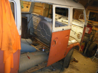 tatt vekk dører. kun eine cargo døra var stri. måtte "sveisa av" boltane pga runda spor etc