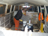 Jau takk fø da Nina, kan melda om at den stolte eigaren av bussen her, og gledar seg voldsomt til å kjøyra buss ei stond sidan siste oppdatering. mammo har med jamne mellomrom skrapa og skrapa på greasen under. begynnar å minka voldsomt no. forsatt skjer da litt demontering på bilen og rensing av vekkrusta stål. Pop out rutene vart fjerna bak. vart litt jobb pga att dei små skruene likte best å knekka, eller å sitta fast. rust dukka opp i skjøyten mellom platene på høgre sida