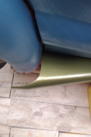 Først setter jeg vingen på i låsen på bakskjørtet, og legger lokket oppå glassfiber"bakdelen". Så tar jeg en tusj/tape og merker hvor jeg skal sage.