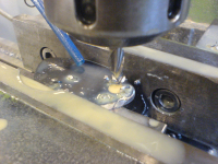 Brukte 45,000mm mellom hullene, men pinneboltene sto med avstand 44,650 så jeg måtte frese ene hullet ovalt.