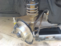 Litt skarp vinkel på bremseslangen, får sette på en lengre om jeg skulle få hjulløft senere.. (Fjærene står maks ute)