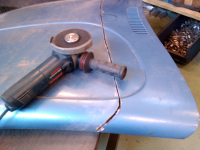 Har satt inn motor med photoshop, har kontrollert proporsjoner. Motor skal rundt 60mm lengre ned, men alle filtrene vil stikke over, samt dyselokket på forgasser. Turbo vil og komme så nærme lokket at jeg må lage en avskjerming i 316 til å ha over. Dette blir for høyt, men siden dette er et rart bygg i utgangspunktet, skjærer jeg bare vekk mer glassfiber og setter på noen flere "scoop".
