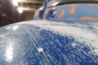 Men passformen ser fin ut, og fikk fjernet noen lag med sparkel(!) Se bildet... Skjermen ser egentlig hel ut under 10mm sparkel, så det må være bilen som har vært skadet...