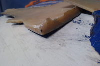 Var litt skuffa over tilstanden, noen har slipt over skjermene med grovt sandpapir(K40?), så jeg må slipe nesten gjennom gelcoaten for å finne "hel ved".