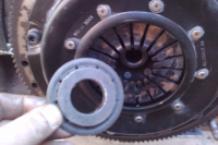 Tok inn og ut maskin maaange ganger og sentrerte cluctchen ditto, før jeg fant ut at ringen på trykkplata har en mm mindre hull enn føringen den skal over på girkassen... Så den tok jeg av...