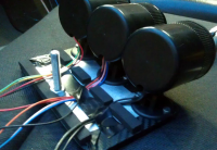 Fikk laget en kombinert batterifesteholder og brakett for skillerelèet, + strømforsyning til kjølevifter og stereo.