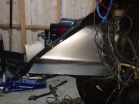 Så skar til jeg formen på denne, bøyde inn øvre kanten, som skal bli fester til bakskjermen for Dezus.
