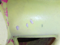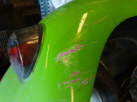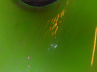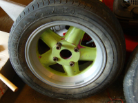FILE0053.JPG (153.34 KB. 1296x972 - vist 267 ganger.) Her av framfelg. Grønn lakk oppå rosa under. Falmet p.g.a manglende klarlakk. Må presisere at jeg ALDRI har lakket desse felgene(følgte med Bilen)
