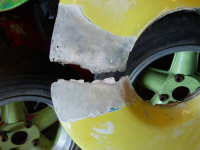 FILE0060.JPG (150.36 KB. 1296x972 - vist 249 ganger.) Fjernet dårlig porøs glassfiber på ene framskjermen. Mye arbeid så må gjøres.