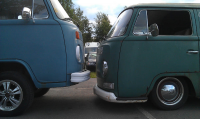scc: var kommet godt i fredagsform da jeg og lobo så denne i skumringen"hey, en ny barndoor!" som to fluer mot lyset surra vi bort for å se, da vi så det var en bay ble vi heller ikke skuffa... gjennomført råtøff buss. både metallarbeid og lakk.