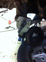 Nå er jobben gjort. Jeg gjetter på at det ikke er få her inne som har kjempet med dårlig verktøy og feil teknikk på de endeleddene.  Hvor brede dekk har du foran? Og husk at det er absolutt siste utvei er å smale inn forstillingen. Alle vet at det ser helt for jæ...g ut. Børge kjøpte for noen uker siden inn et flott apparatur med klokke og greier, den fikk kjørt seg greit i går for å si det mildt. Men, det var bare litt gjengeteip, spilt olje og en hammer som skulle til  Smalnet forstilling er like uaktuelt som å ha takgrind igjen. Dekkdim ja.. var 155 something something? Børge husker kanskje? Hvilken dim kan du foreslå? Og gassdempere eller?