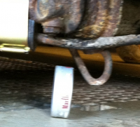 Jeg la meg forresten under bilen og ser at det er jo slepekroken som treffer asfalten når den kommer nedi. Kappe og plassere den i 90 grader vannrett ut fra forstillingen i stedet?