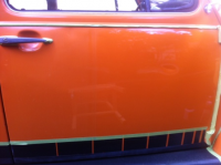 Lakken er dårlig mange steder, sprukket opp og flasset av, rustflekker med sår her og der og tydeligvis omlakkert minst én skjerm og noe bak. Så det er begrenset hvor bra det blir med polering. Men på de store flater så ble det meget shiny  Glad