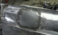 Her er bilde av meg som sveiser litt og bilde av hullet til tanklokket som er på vei til å bli borte Osteaktig