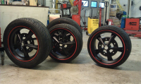 flatlamp.jpg (64.23 KB. 600x600 - vist 248 ganger.) Her er litt om hvordan jeg la på dekkene foran. Det ene måtte av igjen da felgen hadde for mye ujevnt balanse til å stå foran. (egentlig alt for mye til å stå bak også)  Det var ikke lett å få av igjen hvertfall. 185/35-17 foran og 215/50-17 bak. Hoho! Shmuuuud!