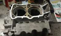 i kveld har jeg fjernet pinnebolter og div småtteri for å komme letter til vannkappene på blokka. Her er et bilde av resultatet av kapping med luftsag. Ikke akkurat vakkert