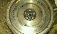 Fikk svinghjulsbolter i dag. Takk for tips til knasten! Her er et bilde av svinghjulet prøvemontert på veiva.