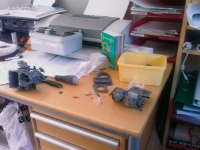 men når jeg strammer mutteren der staget til aks-pumpa sitter drar jeg spjelet så det sitter litt fast. Men på de skissene jeg har funnet på nett så skal det ikke være noen skiver e.l. på denne siden.  Hæ