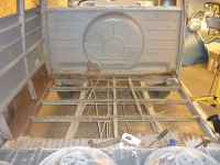 Da har sandblåsing blitt satt litt på vent på grunn av manglende utstyr. I steden så har vi fjerna golvet bak.