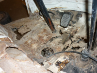 Var popnagla fast flust av plater her og der.. og gasspedalen satt faktisk skrudd fast til hele 3 forskjellige plater som var nagla fast i restene av gulvet...  Øyerulling