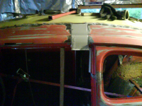 Er det ikke "lettere" å legge inn 10 cm etter b-stolpen, og flytte taket bakover. Da passer luka, og originalskjermer. Pluss at det blir bedre plass til motor under lokket bak?