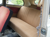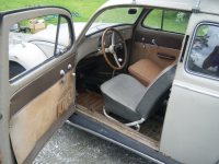 Du har forresten baksete fra en 56 modell nilbeige boble, med brun kantlist (ihvertfall rygg). Det er riktig på forsetet og dørsidene, lys kantlist, på præriebeige.