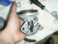 Her er montering igang! Var litt bal med å få satt saman dei indre dalane.. alt står i spenn så da spratt ut når eg demonterte ho, men med noko tenking so fant eg ein måte å montera saman igjen på. Brukar sjølvsagt oppigjen orginal membranen sosant da ikkje er hol, og da var da ikkje. Har eit nytt rep sett til ei pompa og membranen der kan beskrivast som avispapir ifårhånd til orginalen..