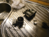 Her er delane ferdig vaska i "syrebadet" Demonterte ikkje choke spjeldet i toppdelen då eg ikkje såg behov for det..