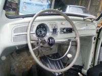 Interiør: Meget flott! Orignalsetar med tøft setetrekk. Sjoførstolen har nok den vanlige slitasjen, men med dørpanela og taktrekket so passar setetrekka veldig bra. Minuset med interiøret er teppene. For dei er råtne, og bør skiftast ut. dvs teppa framme er allerede kasta ut. Baki og er det råtna opp. Ellers er interiøret veldig flott, det er dessutan radio som får inn opptil fleire kanalar på fm, sjølv om det er ein stygg kassetspelar som ikkje passar inn i da ellers strøkna dashbordet.