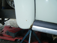 Rusta lappa på venstre sida og, fleire lag med maling, tectyl og zink omeinan her..