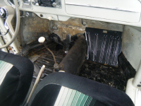 Bunnplata: Er veldig bra, som sagt kun ei veldig lite sprekk bak gasspedalen, treng ikkje sveisast egentlig. Batteribrønnen er bra, men på motsatt sida er det bort eit hol pga att bilen tok inn vatn(dørpakningane). Lyd dempingsmatter i heile golvet. Pedalane bør som sagt gåast over då det er mykje slark på cluch og brems pga den fjøra blandt anna. gasspedalen må ogso overhalast, koblinga mellom pedal og wire er dårlig(satt inn ny wire nylig og fiksa koblinga provisorisk sånn att pedalen faktisk fungerar. Ingen ulydar frå lager, men har ikkje sjekka dei nermare heller.