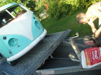 Så skulle bilen av hengeren... noe som skulle vise seg å være lettere sagt enn gjort...  Rekker tunge