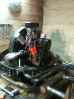 Ble litt endringer i motorplanene. Fikk kjøpe en demontert 1641 av Kjetil. Resultatet ble at blokk og veiv fra singelporten ble brukt som basis, da den er så si ny, påmontert 1641 foringer og 044 topper. Topper heila driden med en Dellorto 40 og 1,25 vipper fra JeZ eller noe sånn.