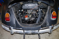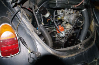 Etter å ha koblet riktig tok jeg en prøvelampe der jeg festet klupa til jord og prøvelampa på den grønne ledning fra fordeler til coil. Jeg vred så fordeleren mot høyre. Lampen tente seg da etterhvert og da den slukket stoppet jeg og skrudde fordeler fast. Bensin og lufttilførsel på forgasser var begge skrudd helt inn og så ut 1,5 gang. Bobla startet og jeg kunne justere ferdig.