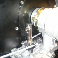 csp linkage.jpg (45.78 KB. 594x600 - vist 441 ganger.) Siden det ikke var noe hull i spjellhuset til gasswire-rør, siktet jeg så godt jeg kunne og borret gjennom. Da viste det sag at den flotte vakuum-boksen min stod midt i veien.... Fikk også hjelp av guttungen til å lage et par braketter for å feste traktene som jeg har dreid ned så innerdiameteren passer med spjellhuset (52mm)