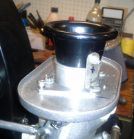 Fikk også hjelp av guttungen til å lage et par braketter for å feste traktene som jeg har dreid ned så innerdiameteren passer med spjellhuset (52mm)