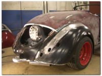 ka hengsler brukte du på baklukå di??har de samma probleme på mi..tar i gassarane så lukå må stå litt utifra..synst ikkje de e så fint så må nokk mekka te nåke...blei likt bak på mi og når eg bredda sjermane..så eg kappte av bakplatå å la inn ei strimmla på ca 5 cm der..blei bra de..då flykta alt,så ser jo bilen ennå lavare ut og  Ja jeg brukte golf VI panser hengsler det var ikke akkurat bolt on, med litt kreativitet så går det greit. Ser jo på roadster`n din at ikke det er no problem for deg  Litt usikker på om toppen på lokket går klar av dynamoen når lokket blir åpnet. Det vil jo vise seg når motoren kommer på plass  Problemet med bakplata er at jeg ville ha Phat Boy eksos og da kan jeg jo ikke forlenge bakplata.. Må inn med motor og på med eksos så får jeg ta en endelig avgjørelse da. Bare 911 kitet kommer i posten snart