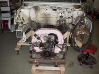 ...og endelig...etter en laaang pause har jeg nå kommet i gang igjen. Karosseriet er løftet av bunnplata og bunnplata er nå vasket og klar for demontering.
