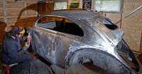 På innerskjermer og understell bruker jeg mest grov stålbørste på vinkelsliper  Kult
