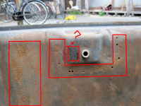 Var ein dårleg tank du hadde der. men da bør jo gå bra å sveisa den igjen. solenge du vert kvitt alle plassar med gravrust og hol so vert den bra igjen. om du ikkje har tru på att sveisinga vert 100% tett so går da vel bra å slaglodda over sveisesaumen etterpå som ein forsegling. og deretter bruka tanksealer inni.