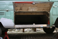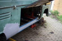 Da kommer det endelig en liten oppdatering med bilder! Jeg har arbeidet på førersiden i den siste tiden når jeg har hatt litt tid.. Har skiftet gulvbjelker, utrigger og stolpe bak- ++- Arbeider meg fremover og holder på med utrigger og område foran i hjulbuen nå.