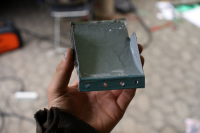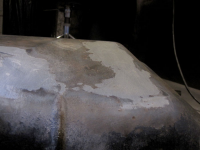 I går fikk jeg endelig tettet tanken. Bestemte meg for å sveise hullene selv (tanken har ligget og luftet utendørs siden mars). Det fungerte egentlig helt fint. Jeg sveiset en liten ring rundt hvert hull med lav strøm først, slipte ned og smeltet hele ringen sammen med mere strøm etterpå. Tok to runder og fikk lyst gjennom og sjekket at det ikke var noen flere hull. Etter det gikk jeg over sveisningene, og der tanken var blitt litt tynn i skallet, med kjemisk metall og la et godt lag oppå og slipte ned når den var herdet. Tenkte det som en ekstre sikkerhet og beskyttelse. Så ble tanken grunnet en gang. Nå venter jeg på tanksealer som jeg skal ha på innsiden. tror det blir tett og bra. Her noen bilder fra gårsdagen: Hullene rundt uttaket i bunnen.