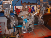 Så var sommeren nesten over og på tide med litt oppdatering på denne tråden! Den nye motoren http://www.vwnorge.no/index.php/topic,12310.30.html har fungert perfekt hele sommeren. Bussen har gått langt og blitt kjørt hardt. Tror vi regnet ut at det var bortimot 8000km denne sommeren!! Den har vært på VW Open/Finland, BugRun/Sverige, MIB/Danmark, VW Internationals/Fredrikstad + en rundtur i Tyskland-Belgia-Frankrike. Og selvsagt på SCC!! Til SCC gikk den fullastet til taket med fullastet tilhenger og holdt marsfart på 100-110 hele veien  Litt bilder: Motor klar for montering i bilen: