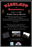 Jeg mottok igår glanyheten om at det den 07.05.2011 vil bli arrangert Street Legal i Brumunddal sentrum. Kjøring fra klokken 12.00 til 23.30. For dem som ikke har vært der før så kan jeg fortelle om dyktige arrangører og en folkefest uten like med proppfulle tribuner.