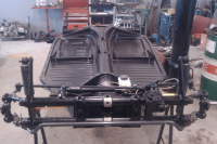 Oppdatering. Bunnplate mer eller mindre klar. -Kerscher skivebremser foran og bak.- Skiver maskinert om til Chevy boltmønster. Midlertidige hjul på, for å få chassis trillbart...