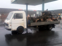 Hjelper ikke en gang om jeg knekker armene mine når jeg ikke har penger til å lage ny bil. Dette er nok kroken på døra for meg. Jeg rydder i alle fall unna mens jeg fortsatt har bilen. I dag gjennomførte jeg en av mine vanskeligste operasjoner: Laste boble med kun bakhjul, hvorav det ene var flatt, med bare enkle midler. Det gikk dette også.