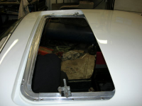 Ruter på plass. Ny frontrute var ca. 1cm. for brei og måtte erstattes med en brukt.